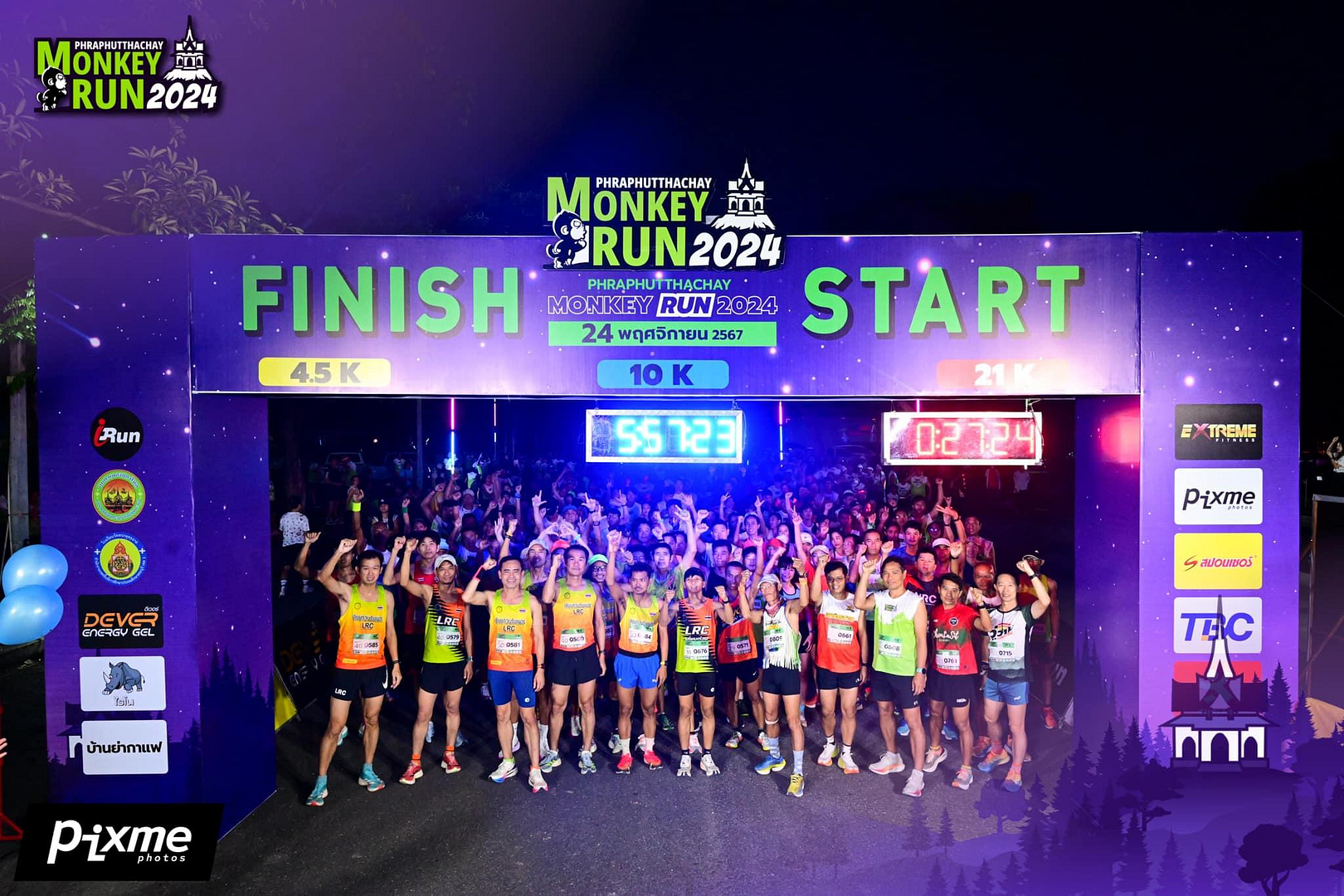 ภาพบรรยากาศความสุขของนักวิ่งทุกท่านภายในงานวิ่งมาราธอน Phraphutthachay Monkey RUN 2024 งานวิ่งที่สัมผัสความท้าทายและความสนุกท่ามกลางธรรมชาติ และพบปะลิงน่ารักตลอดเส้นทาง งานนี้เหมาะสำหรับผู้ที่รักสุขภาพและธรรมชาติ